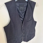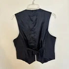 A versatile men's vest with a sleek design, suitable for layering over shirts or under jackets. Offers a sophisticated look for formal or semi-casual settings. • Button front closure • Adjustable back strap • Three front pockets • Polyester lining • Houndstooth pattern Chest width = 21 inches Length = 23 inches