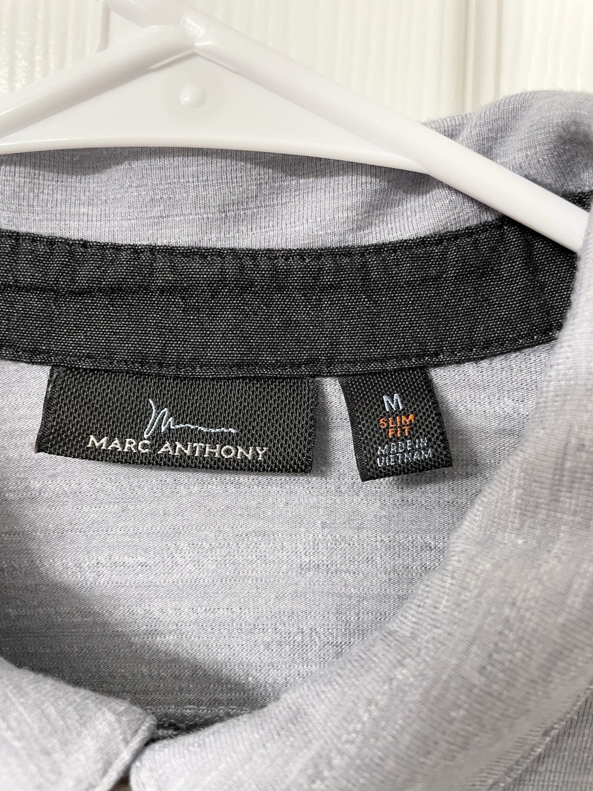 Marc Anthony men’s long sleeve button-up shirt in a versatile gray color. Slim fit with a clean, modern silhouette — easy to dress up or wear casually. Features a classic collar, full button front, and a chest pocket. Soft, lightweight fabric with a smooth feel, comfortable for all-day wear. Pre-owned in good condition with no major flaws noted. Please review photos for details and feel free to ask any questions.