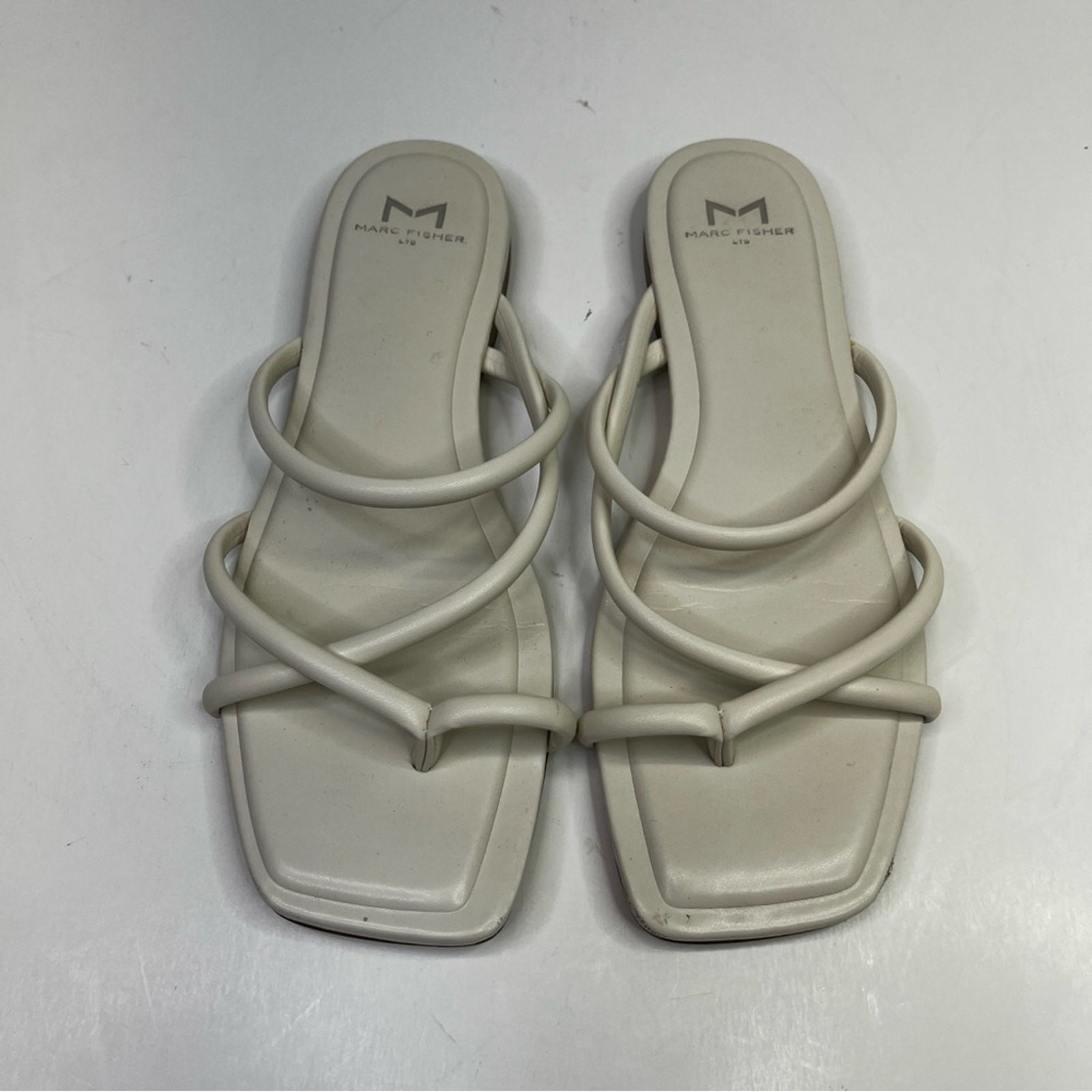 Marc Fisher LTD Fiada 2 sandals ivory - 7.5 M Brand: Marc Fisher Size: 7.5M Type: Sandals Color: Ivory Closure: Slip On Material: Manmade Condition: Very Good Used Condition Marc Fisher LTD Fiada 2 Sandals in Ivory. Featuring svelte, rolled straps that cross at the top. Designed with a flat sole for comfort and ease, they are crafted with a manmade upper, lining, and sole, making them a lightweight and easy-to-style option for pairing with dresses, shorts, or linen trousers all season long. Casual, Preppy, Everyday, Minimalist, Chic, Trendy, Resortwear, Going Out, Closet Staple, Summer, Spring, Coastal, Quiet Luxury