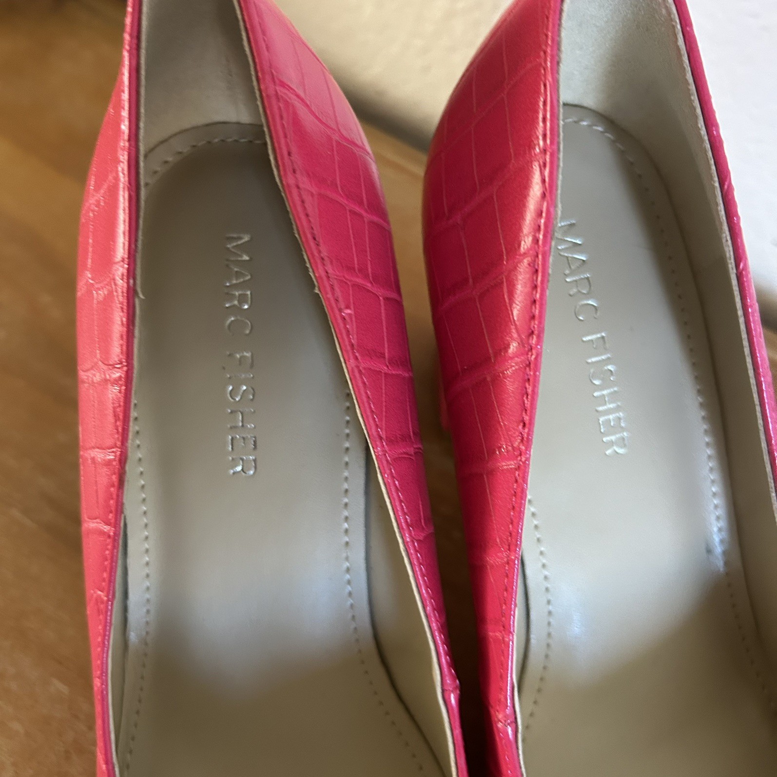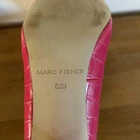 The Marc Fisher Pink Caitlin Block Heel Women's size 6 Pointy Toe Shoe is a stylish and elegant pump designed for formal occasions.