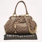 Our eBay Store About Us Contact Us Add to Favorite Sellers Marc Jacobs Brown Quilted Leather Stam Satchel The Marc Jacobs Stam remains one of the most beloved classic bags to have in your designer bags collection. Crafted in Italy from luxurious quilted leather, its rich brown hue emanates understated sophistication. Gold-tone hardware adds an opulent touch. Product Details Brand Marc Jacobs Includes The Luxury Closet Packaging, Detachable Strap Certified by The Luxury Closet This item has gone through a detailed authentication process overseen by our experts. We offer a lifetime guarantee of authenticity on all our items. How We Check The in-house team of experts at The Luxury Closet is highly trained to verify the authenticity and the condition of the luxury products. They ensure that only 100% authentic items are put on sale.The evaluation process is unique with its own mix of assessment criteria and differs according to the category. Each item is evaluated based on the following combination of hallmarks, hardware, stitching, symmetry, material, craftsmanship, stamping, codes, hologram stickers, and packaging. Our authenticators also check if the items have been modified or amended (e.g., aftermarket diamonds, replaced batteries, repaired bags, etc.) Please note that this handbag may have a perfume scent, as it was stored and packaged in Dubai where such fragrances are commonly used. International Buyers Import duties, taxes and charges are not included in the item price. These charges are the buyers responsibility. Please check with your country’s customs office to determine what these additional cost will be prior to buying.
