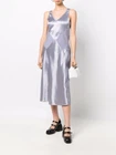 This stunning Marc Jacobs slip dress is the perfect choice for any holiday party or special occasion. The dress features a beautiful violet silver silk fabric with a satin finish, making it both luxurious and comfortable to wear. The dress has a sleeveless design with a flattering V-neckline and a zip closure, adding to its elegance and sophistication. The dress is a size 4 and has a midi length, making it suitable for any season. The dress is solid-patterned and has a silver character, perfect for any themed event. The dress is made in Madagascar and is of the regular size type. Add this gorgeous dress to your wardrobe today and be the envy of everyone at your next event! This dress is pre-owned but in great condition. No noticeable flaws or wear. Size 4. WILL SHIP NEXT DAY (w exception of no shipping Sunday).