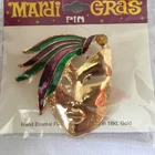 Mardi Gras Mask Pin Hand Enamel Finish Plated 18K Gold New Purple Green Yellow
