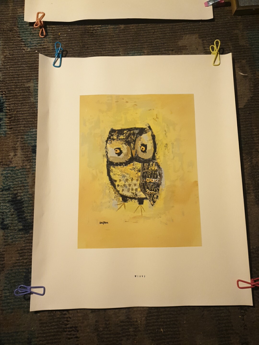 This charming vintage lithograph by Margaret Layton is a true gem! The delicate watercolor owls in warm gold and yellow tones add a touch of mid-century elegance to any space. The subtle details and hand-painted quality make it a standout piece—perfect for collectors or anyone who loves unique, timeless art. "Winky" brings warmth and personality to my walls!