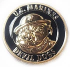 Marine Corps Challenge Coin DEVIL DOGS U.S. MARINES 1 5/8" 42mm USMC United States Marine Corps Challenge Coin Officially USMC Licensed "DEVIL DOGS" Condition : New Size : 42mm 1 5/8" What is a challenge coin? A challenge coin is a small coin or medallion (usually military), bearing an organizations insignia or emblem and carried by the organization's members. Traditionally, they are given to prove membership when challenged and to enhance morale. In addition, they are also collected by service members. In practice, challenge coins are normally presented by unit commanders in recognition of special achievement by a member of the unit. The CEO of Survivors Edge received his first challenge coin while serving in the United States Marine Corps back in the early 80's. Now he carries one every received from his wife, a fireman's coin. Whether in his turnout gear for fires, or station gear for medical calls, it's in his left front pocket. It reminds him of the love, care and honor his wife has for him, as well as prayers for his safe return. It's just a coin with no magical powers. But give one to someone you love, and it too will bring comfort in tough times. Looking for an armed forces or Marine Corps logo item? Make sure you drop us a note. We're adding new items all the time. By the way, all of us at Survivors Edge are Marines. This collector's coin is perfect for your Marine or other branches of the military family member. "One of my favorite challenge coins was passed around and prayed over before giving it to me. Imagine that. Everyone there held it in their hand and said a prayer for me. You know I still have that one." "Today, we understand that peace through strength is more than a slogan. In a world such as ours, it's a moral necessity, and in the tough job of preserving the peace and defending our nation's independence and freedom, the U.S. Marines have always been there, ready to do their duty." Former President Ronald Reagan Shop us at SurvivorsEdge and PatchesAndStickers . SurvivorsEdg e is a Service-Disabled Veteran-Owned Small Business (SDVOSB) specializing in United States Marine Corps gear, survival gear, karambit and zytel polymer knives, Arkansas sharpening stones, and cigar and tobacco pipes and accessories. Visit us on these sites for specials and coupons!