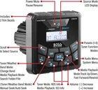 Marine Gauge Receiver - Bluetooth, Digital Media MP3 Player, No CD Player, USB Port, AM/FM Radio, NOAA Weather Band Tuner, Weatherproof Bluetooth - Play and control music through your smart or MP3 player as well as apps like Spotify / Pandora, wirelessly Weatherproof - The has been outfitted with the latest weatherproofing techniques such as front panel UV coating, PC board with conformal coating. It has an IPX 6 rating for protection against splashing water Media Playback - Bluetooth, play music via the USB port or tune into the AM/FM radio stations for up to date music/news/sports, no CD/DVD mechanism, NOAA Weather Band Tuner, USB charging Inputs - The USB port gives you the option to have a vast library of audio files at your fingertips. The auxiliary input is compatible with audio output from smarts and MP3 players Outputs - Use the front & rear or subwoofer pre-amp outputs to hook up your speakers or subwoofer Specifications - Dimensions - ” x ” x ”, Weight - lbs. satisfaction - provides a powerful 3- platinum online dealer satisfaction so long as the purchase is made through .com. We strongly encourage professional installation of this product to ensure proper and safe functionality Crest the waves while enjoying your music with the BOSS Audio Weatherproof Gauge Mech-Less (No DVD/CD Player) Digital Media Player. Turn on the Weather Band/AM/FM radio, hook up your smart or MP3 player through the Auxiliary input or plug into the USB port to charge or play USB-connected devices. Bluetooth technology lets you stream audio apps like Spotify and Pandora. Change up the sound with the Preset built-in EQ. With an IPX Rating of 6, state-of-the-art weatherproofing materials and special UV protection coatings, the resists corrosion and is protected from the elements. Keep your tunes flowing with the Boss Audio . For further product details, please scroll down.