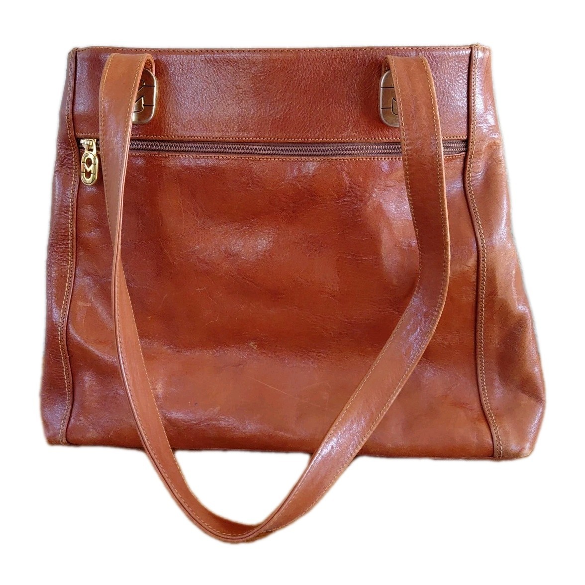 The Marino Orlandi Vintage Leather Handbag is a luxurious and stylish accessory crafted in Italy. Made from solid brown leather with gold hardware accents, this shoulder bag features a zip closure and a comfortable brown leather strap. The interior is lined with a plaid fabric and includes inner pockets, making it perfect for travel, casual outings, or business meetings. With its vintage charm and designer appeal, this handbag exudes an air of old money sophistication, making it a timeless addition to any woman's wardrobe. *Leather has some natural wear, but please see photos for signs of wear.*
