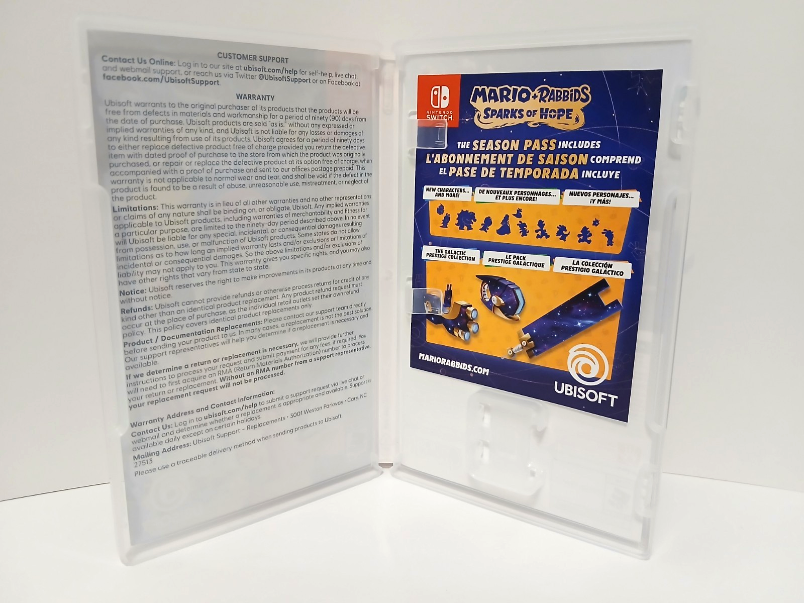 Up for Sale: ~~ Mario + Rabbids: Sparks of Hope - Case Only (Switch Version), No Game ~~ Actual Item Description: Mario + Rabbids: Sparks of Hope case only. Nintendo Switch version. Case is in very good condition. Case only, no game included. Item comes from a smoke and pet-free home. Actual item for sale pictured. ~~Shipping Cost~~ Free USPS Ground Advantage shipping with tracking number. Please be sure your shipping address is correct, buyer to pay shipping if returned. ~~Payment Accepted~~ Paypal, Google Pay, Visa, Mastercard, Venmo, Discover Questions? Click on "Contact seller" and your message will be answered ASAP.