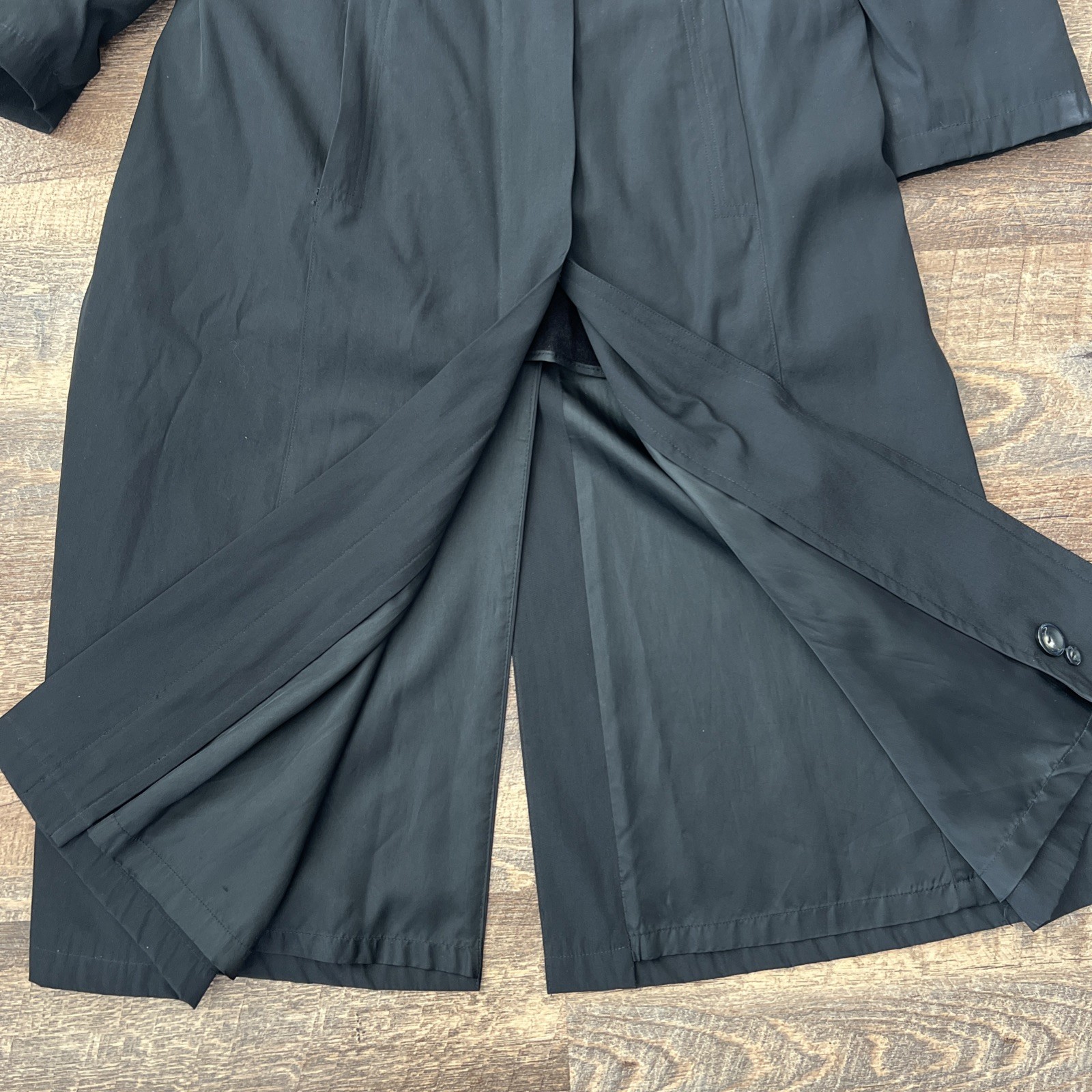 This item is preowned with signs of normal wear. Hole noted to left sleeve removal liner, missing button also noted to sleeve of removable liner. Initials “AE” written on inner label/tag Coat could benefit from professional cleaning. Refer to pictures for condition and measurements. Color may appear different in person than in pictures.