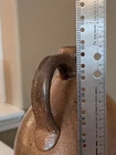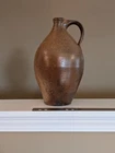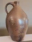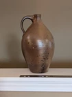 This is a beautiful piece of handmade pottery by Mark Hewitt. Mark uses NC Piedmont clays and blends the different North Carolinian folk traditions into a contemporary style that has attracted a sizable following for his work. I purchased this lovely warm brown-shaded jug from Mark himself in the mid-1980's at Durham's downtown CenterFest festival. The dimensions of this jug are: 12 inches in height with a width of 7 inches at its widest point. Made of clay and finished in a unique salt glaze, this vintage jug is an original piece. The jug is signed by the artist himself with his WMH stamp, adding to its authenticity and value. Mark’s work has been featured in numerous publications including the Smithsonian magazine , the cover of American Craft magazine, and he has written extensively in the ceramic press. Mark has exhibited in London, New York, and Tokyo, as well as throughout the US. He is well-represented in museum and private collections. Mark and his work were featured extensively in the PBS series, “ Craft in America" .