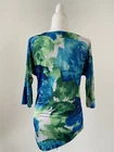 Elevate your wardrobe with this stylish Mark Zunino top featuring a beautiful floral pattern in shades of green and blue. The 3/4 sleeves and round neckline make it perfect for both casual and workwear occasions. The pullover closure and slim fit provide a flattering silhouette, while the lightweight and stretchy material ensure comfort all day long. Pit to Pit: 18.5โ; Length: 26โ. This top is machine washable and wrinkle-resistant, making it easy to care for and perfect for travel. It is available in size XXS and is suitable for all seasons. With its non-iron and quick-dry features, you can wear it with ease and confidence. Add this versatile and stylish top to your collection today! Condition of the item is Pre-Owned in great shape! Shipped asap by USPS ground advantage mail.