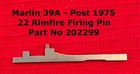 Marlin Firing Pin for Model 39A & 39AS Post 1975 mfg - 22 RF Marlin Part 202299: Reproduction part made to the exact specs of the original For rifles made post 1975 Marlin part number 202299 Thanks for looking and please email me with any questions or if you need more pictures. Buyer is responsible for asking all pertinent questions in advance of bidding/purchase. All items are described to the best of my ability. It is the purchaser's responsibility to be absolutely certain that any gun parts purchased from tdail3 are installed correctly and fitted properly, and that any work performed by you or others to be safe and correct. It is recommended that only a fully qualified gunsmith perform any repair work.