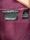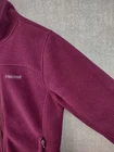 Marmot Jacket Womens Medium Purple Polartec Full Zip Fleece Outdoor Hiking Warm Condition: Gently worn, no visible flaws. Zippers function properly and fleece remains soft with no major pilling or stains noted. Shell: 100% polyester Polartec fleece for warmth and breathability Features embroidered Marmot logo on front chest and classic M reflective logo patch on back lower hem Full zip front closure with two zippered hand pockets for secure storage Stand collar for extra warmth and wind protection Tag size: Medium (Womens). Please see measurements in photos for fit reference. Color: Deep purple Made in China Perfect for hiking, layering, outdoor adventures, or everyday wear Care: Machine wash cold with like colors, tumble dry low
