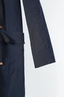 Made in Italy, this coat from Marni's 2010 Resort collection is crafted in a navy cotton-blend gauze, and features long sleeves, a notched lapel collar with drawstring cinching and raw-edge detailing, a front tie closure, and front patch pockets with overhanging flaps. Size: IT 38 (US 2, XS) Condition: Excellent; very light marking on neckline. Approximate Measurements (laid flat): Shoulder: 21.75" (55 cm) Chest: 15.5" (39 cm) Length from back: 33.25" (84.5 cm) Sleeve length: 20.25" (51 cm) Composition: 99% cotton, 1% silk.
