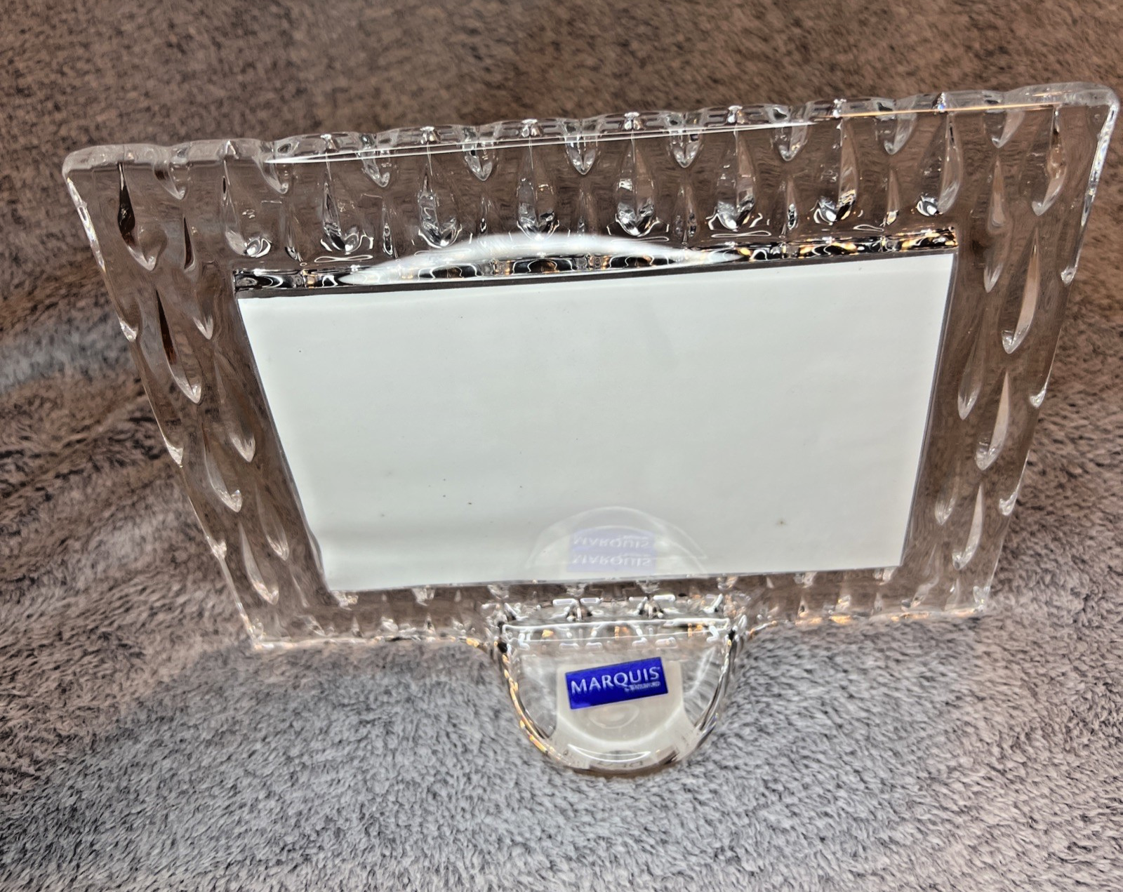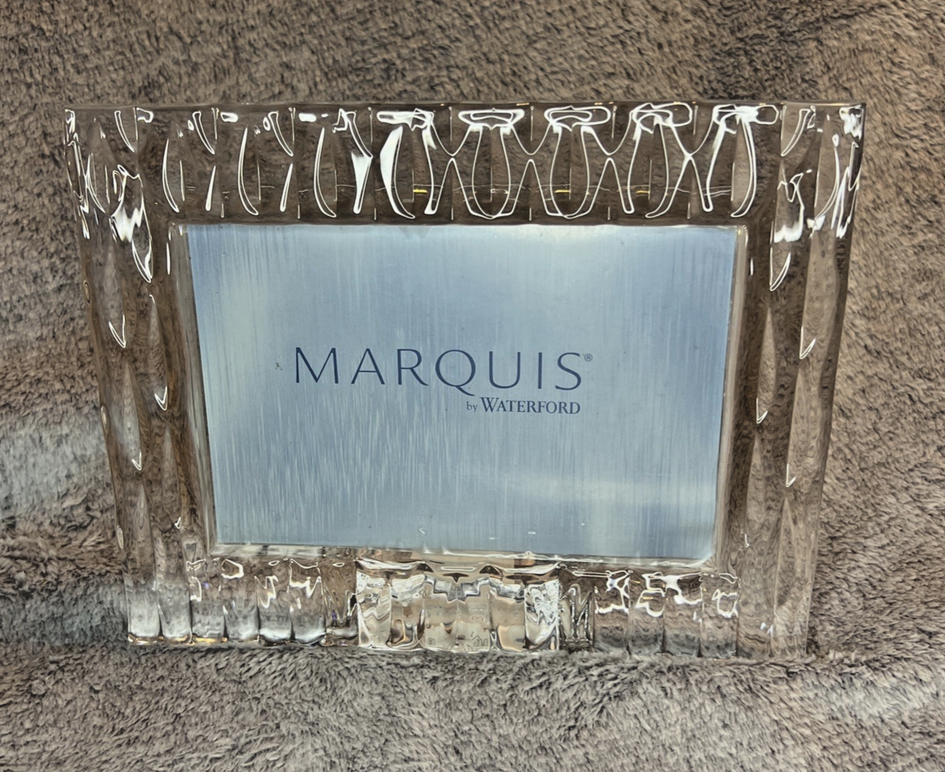Box has some wear from moving. The frame is new in box. The Marquis By Waterford Rainfall 4x6 Frame is a stylish and elegant decorative piece made of crystal glass. Featuring a clear color and an original design, this frame is perfect for showcasing your favorite photos or artwork in a sophisticated way. The Waterford brand adds a touch of luxury and quality to this product, making it a lovely addition to any home decor.