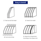 Marte Vanci Collapsible 4 Compartment Magazine Holder Desktop Adjustable Sturdy File Dividers Document Cabinet Rack Display (Black) SPACE SAVER -- Marte Vanci foldable binder holder organizer is a brilliant way to sort any file documents especially where storage space is limited. You can fold it to 3,2 or single compartment to suit for shelf, desk, bookcase and so on. NO-HASSLE TO ASSEMBLE -- You will get an one-piece design magazine file holder and no annoying assembly required,just stretch the file holder, put the fix bar on the joint part, then you can enjoy your orderly desktop. SUIT FOR MORE SIZE ---The Open Sector Design of this document magazine rack make it fit for larger size documents without depth limit. Great for displaying office paperwork,books, magazines, binders, CDs, craft paper, handbags home kitchen stuffs etc.. MATERIAL--Marte Vanci lever arch file storage holder is made of high quality sturdy and durable plastic that withstand daily wear and tear, easy to deform, which makes your file holder frame very steady and durable. FASHION OUTLOOK -- This collapsible file book divider features a hollow out body with classic color, making it a great desk accessories on your space. Please note : --- If the item cannot use or you received your item not as expected. Please let us know. You can return the item for getting a full refund. The full refund is a guarantee after the item is returned. Of course, there is no cost for you to return the item back. ---Again, If you want open an eBay return case. If it is possible, could you please help us write or select the reason for return as "change my mind " or "order by mistake" or "Doesn't fit or " Just didn't like it " . Do not worry, We do not charge anything. You still received the full refund also. --- Please don't write or select another reason. It will affect our eBay performance. If you consider helping us, it would mean so much to us. Please consider it as a support for building up our eBay into a better community. --- If you have any problem with your order, please contact us and we will do our best to make you satisfied. Store Policy 100% Satisfaction Money Back Guarantee, Return accept every case. Fast Shipping, Only 1-2 Days Handling Time. We try to ship most items within 24 hours of payment Most orders are in transit for two days but some may take longer. Please Contact us by eBay message only, We usually respond within 24-48 hours on weekdays. Buy with confidence. We ship through Fast Trusted shipping carrier and storage in best warehousing services throughout the United States. Your kind positive feedback and full score rating would mean a world to us, we do appreciate. If you feel dislike or not satisfy about anything and thinking about giving us a neutral or negative feedback or not giving full score rating to us, please kindly contact us through eBay message before doing that, we would like to attend to any of your concerns and make things right for you. Shipping Policy We only ship to addresses that record on eBay data. We provide Fast shipping via one of the most reliable carriers (UPS, FedEx, USPS, etc). We do not ship to APO/FPO addresses or PO Boxes allowed. Local pickups and combined shipping options are not provided at this time, sorry for this inconvenience. International buyers please note: Import duties, taxes, and charges aren't included in the item price or postage cost. These charges are the buyer's responsibility. Please check with your country's customs office to determine what these additional costs will be prior to bidding or buying. Return Policy 100% customer satisfaction Money Back Guarantee, if the item received is either not as described or damaged in many ways. We will always guarantee a return with full responsibility. Contact us and simply follow our instruction. We will provide you with complete return instruction to your eBay message. The location of the warehouse responsibility for the return will be determined by the fulfillment service department.Of course, there is no cost for you for return item back. Once the item arrived at our warehouses and confirm from the tracking number that the item has been delivered.We will issue you the refund within 2 business day. Again, If you want open eBay return case. If it possible , could you please help us write or select reason for return is "change my mind "or "order by mistake" or Doesn't fit or " Just didn't like it ".Do not worry, we do not charge anything. You still received the full refund also. Please don't write or select another reason. It will be effect with our eBay performance. If you consider to help us, it would mean so much for me. Please consider as a support for build up our eBay a better community.