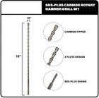 Martillo Giratorio Con Punta Sds-Plus De Carburo Sds De Bit Brote De 1/2'' NUEVO Broca SDS Plus de 1/2" x 16" x 18" – broca larga para taladro percutor de mampostería Broca SDS de alta calidad diseñada para trabajar en aplicaciones de mampostería; ladrillo, piedra, hormigón, bloque, etc. Compatible con todos los taladros percutores rotativos de tamaño SDS Plus; Bosch, DeWalt, Hitachi, Hilti, Makita, Milwaukee, etc. La broca para taladro percutor SDS cuenta con una punta de carburo autocentrante de 2 ranuras que garantiza velocidades de corte rápidas y una vida útil MÁXIMA Vida útil prolongada: nuestro diseño optimizado de brocas para hormigón permite que el material salga rápidamente del orificio mientras permite que la broca para taladro percutor de hormigón permanezca fría