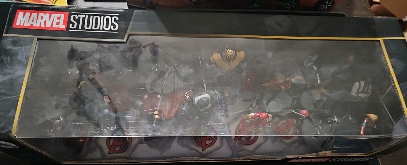 This is a Brand New, Disney Store Marvel Studios Mega Figurine Set. This highly collectible item was purchased directly from the Disney Store in Disney Springs, ensuring authenticity. The box has never been opened, and the figures are in mint condition inside. Condition: New in Box (NIB). Minor shelf wear may be present on the outer packaging as expected from retail purchase. Contents: A 20-piece mega set featuring characters from the Marvel Cinematic Universe Infinity Saga. Figures are fully sculpted PVC and are approximately 4 inches tall. Characters Included: Features key heroes and villains such as Iron Man, Captain America, Black Widow, Thor, Hulk, Thanos, Ant-Man, Captain Marvel, Gamora, Nebula, and more. Exclusivity: A genuine Disney Store Exclusive item.
