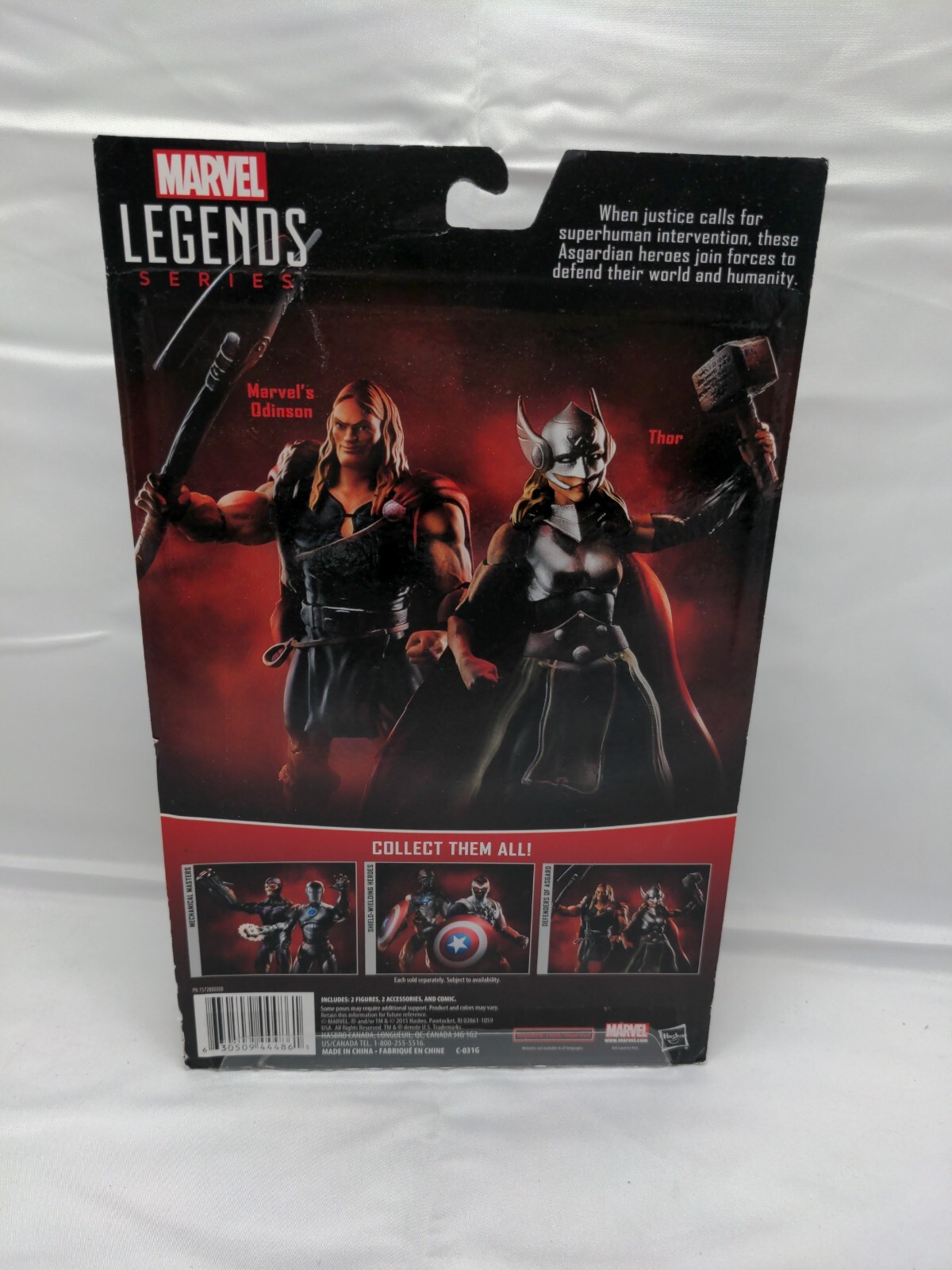 Packaging:MINOR PACKAGE WARE, SEE PHOTOS FOR CONDITIONScale:3.75Time Period Manufactured:2010-2019Franchise:Marvel UniverseMPN:7572800000Character:FEMALE-LADY THOR & ODINSONUPC:630509444861Type:Action Figure, COMIC 2-PACKTheme:Comic Book HeroesCountry/Region of Manufacture:ChinaMaterial:PlasticBrand:HasbroGenre:Comicsgtin13:630509444861