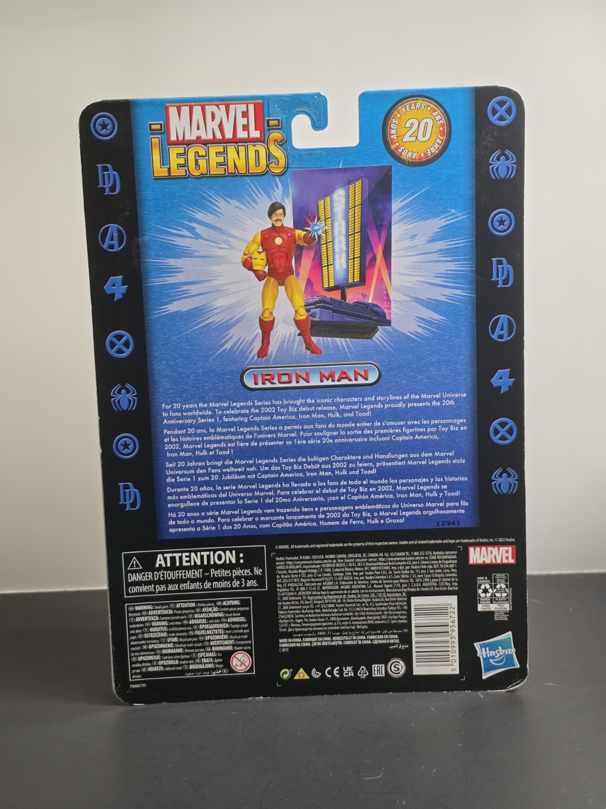 The Marvel Legends IRON MAN 20th Anniversary Classic Action Figure by Hasbro is a highly detailed and collectible toy based on the iconic character from The Avengers and Iron Man movie franchise. Standing at 6 inches tall with a full-body design, this articulated character figure features Robert Downey Jr.'s depiction of Iron Man, complete with a multicolor design and boxed packaging. Perfect for fans of the Marvel universe and collectors alike, this action figure is a must-have for any enthusiast of the Marvel franchise.
