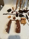The product is a lot of Marx Johnny West Geronimo action figures with accessories, focused on the character of a Western cowboy. The figures are beige in color and part of an action figure collection by the brand Marx. This lot likely includes various accessories such as weapons, hats, and other items to enhance the play experience for children or collectors interested in cowboy-themed toys. Only missing body part is Geronimo’s hand. Includes all accessories pictured including rare Geronimo face mask Rare set!