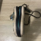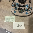 The Mary Frances Unplugged Cream Woven Turquoise Beaded Guitar Bag is a rare and stylish shoulder bag designed for women. The cream exterior with teal lining and multicolor beaded accents from France adds a touch of sophistication to any outfit. This unique bag is a true statement piece from the Mary Frances product line, perfect for those who appreciate intricate details and high-quality craftsmanship. Each unique design is handmade by skilled artisans. Slight variations make your piece one of a kind! Measures Approx. 8.5"H x 6.5"L widest points × 2"D .18" detachable strap drop Comes with Authenticity card.
