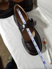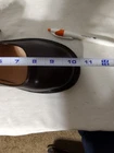 They are size 9 according to my measurements. There are no tags nothing. Now the exact same shoes, like these , sell on the internet for a lot of money and they're called Mary Jane's , unbranded too , l have another pair of shoes that are labeled size( 9) I placed a tape measure inside from up against the toe to the very end of the heel, did the same thing with this pair of shoes it read 10 which means they are a size 9. I'm not sure about the width but both boat shoes look the same so I bet they're just a regular nine. I get all my ladies shoes from my sister who has issues with her feet. She tries them on at the store if it did when she gets home they don't fit the same she has issues with you. I'll go along with pre-owned, she's got about. They look brand new and if you're not happy with the way they fit you, send them back for a cash refund within 30 days.
