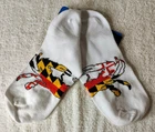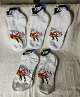 These Maryland Terrapins socks are officially licensed by the NCAA and are designed for adults in size 10-13. The socks feature a multi-color design and are suitable for both men and women. The product is made in the United States and is perfect for fans of the University of Maryland to wear during NCAA March Madness or regular season games. The lot includes 5 pairs of socks. Please feel free to ask any questions before purchasing and thanks for looking