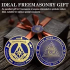 About this item Size & Craftsmanship: Diameter: 40mm Thickness: 3mm Material: Iron with luxurious electroplated gold finish Finish: High-relief die-cast with vibrant enamel detailing and finely crafted edges, ensuring a polished and high-quality appearance. Front Design Concept: Brotherhood, Strength, and Beauty: The front of the coin features the iconic Masonic square and compass with the G symbol, representing Brotherhood , Strength , and Beauty —the foundational principles of Freemasonry. The phrase “A Way of Life” highlights the deep commitment to Masonic teachings and values that guide Freemasons in their journey toward self-improvement. Symbolic Laurel Wreath: The coin’s design is completed by a laurel wreath, symbolizing honor, accomplishment, and the pursuit of wisdom. The blue enamel background emphasizes the rich history and spiritual connection Freemasons share. Back Design Concept: The All-Seeing Eye & Masonic Ideals: The reverse side features the powerful Eye of Providence , symbolizing divine insight, enlightenment, and spiritual guidance. The all-seeing eye is surrounded by the words “Faith, Hope, Charity” , which are central tenets of Masonic belief, reminding the wearer of the values that Masons strive to live by. Making Good Men Better: The inscription “Making Good Men Better” encapsulates the core purpose of Freemasonry—to help individuals grow and improve themselves in service to others and the world. Perfect for Gifting: This coin is an excellent gift for Freemasons, collectors, or anyone who values the deep traditions and powerful symbols of Freemasonry. Whether for display, as a personal keepsake, or as a thoughtful gift, this coin embodies the principles of brotherhood, enlightenment, and moral growth. Why You’ll Love It: Beautiful gold finish with vibrant enamel detailing for a striking visual appeal Powerful Masonic symbolism of Brotherhood , Strength , Wisdom , and Enlightenment Ideal for collectors, Masonic enthusiasts, or as a meaningful gift High-quality craftsmanship with serrated edges that add a refined touch Amazing Treasure Still wondering what to add in a collection? A special and long-last memory gift? Or the connection between you and your most important one. You can always find your own treasure here. Packing Each coin will be packed up individually with a plastic case suit in opp bag. Shipping We'll start shipping as soon as possible within 2 business day normally. Tracking will be available after. Feedback We try to make sure ALL customers are satisfied with our services, if you do, a POSITIVE feedback is appreciated, thank you very much. And we always leaving a positive one for customer when item is delivered successfully. Contact Us Feel free to contact us at any time, we're happy to help. You can reach us by eBay or E-mail. Have a nice day!