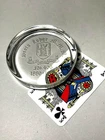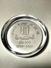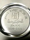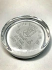 FROM MADEIRA WITH LOVE..... Found in the estate of a Portuguese gentleman who had spent his adult life in London. Upon returning to Madeira, he brought back numerous decorative mementos related to his Masonic affiliation in the United Kingdom. An acid etched crystal paperweight, commemorating the 100th anniversary of Scots Lodge Mark Masters Masons No. 406. The dates 1889-1989 engraved as well. It measures approximately 9cm (3 1/2") across, 2cm (3/4") thick. I have inserted a standard size playing card in one photo as a size reference. No chips, cracks or damaging abrasions. Must have not been used very much, no evidence it was ever dropped or abused. MUCH OBLIGED