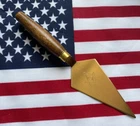 This exquisite Freemason Golden Trowel Letter Opener is a must-have for any Masonic enthusiast. Crafted with precision in the United Kingdom, it features a beautifully engraved Masonic Square and Compasses, along with other symbolic marks. The trowel is perfect for use in any fraternal organization, and its historical significance cannot be overstated. The item is ideal for collectors of other Freemason collectibles and Masonic memorabilia. It is an excellent addition to any collection and is sure to impress. The trowel is not signed and has not been modified in any way. Get your hands on this unique piece of history today! Miniature Trowel / Letter Opener 7.5" Long Excellent Condition Not Engraved or Monogramed