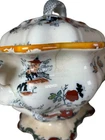 As you can see there is a few point where is chipper and the painting is worned! Please see all the photos as all the damage is pictured. Sizes: Height with lid 26 cm Width 30 cm and 20 cm depth