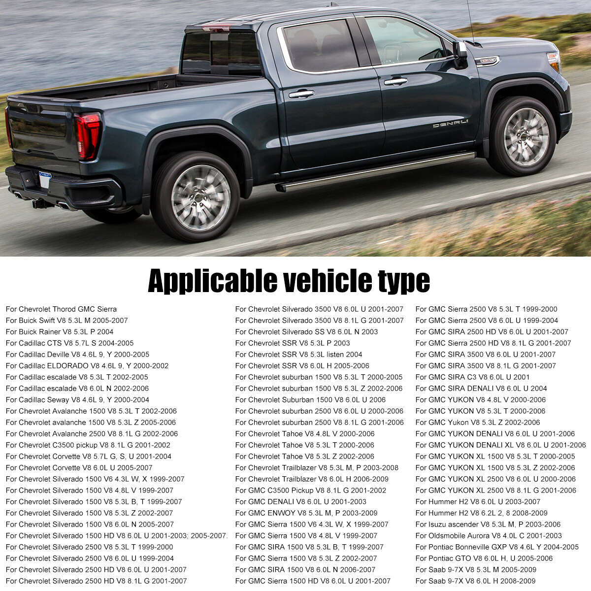 Mass Air Flow Sensor MAF For Chevy Silverado GMC Sierra Cadillac Escalade 213364 OE: 25318411 213-4160, 2134160, 213-364, 213364 Compatible Vehicles: MAKE MODEL ENGINE VIN CODE YEAR BUICK RAINER V8 5.3L M 2005-2007 BUICK RAINER V8 5.3L P 2004 CADILLAC CTS V V8 5.7L S 2004-2005 CADILLAC DEVILLE V8 4.6L 9, Y 2000-2005 CADILLAC ELDORADO V8 4.6L 9, Y 2000-2002 CADILLAC ESCALADE V8 5.3L T 2002-2005 CADILLAC ESCALADE V8 6.0L N 2002-2006 CADILLAC SEVILLE V8 4.6L 9, Y 2000-2004 CHEVROLET AVALANCHE 1500 V8 5.3L T 2002-2006 CHEVROLET AVALANCHE 1500 V8 5.3L Z 2005-2006 CHEVROLET AVALANCHE 2500 V8 8.1L G 2002-2006 CHEVROLET C3500 PICKUP V8 8.1L G 2001-2002 CHEVROLET CORVETTE V8 5.7L G, S , U 2001-2004 CHEVROLET CORVETTE V8 6.0L U 2005-2007 CHEVROLET SILVERADO 1500 V6 4.3L W, X 1999-2007 CHEVROLET SILVERADO 1500 V8 4.8L V 1999-2007 CHEVROLET SILVERADO 1500 V8 5.3L B, T 1999-2007 CHEVROLET SILVERADO 1500 V8 5.3L Z 2002-2007 CHEVROLET SILVERADO 1500 V8 6.0L N 2005-2007 CHEVROLET SILVERADO 1500 HD V8 6.0L U 2001-2003; 2005-2007 CHEVROLET SILVERADO 2500 V8 5.3L T 1999-2000 CHEVROLET SILVERADO 2500 V8 6.0L U 1999-2004 CHEVROLET SILVERADO 2500 HD V8 6.0L U 2001-2007 CHEVROLET SILVERADO 2500 HD V8 8.1L G 2001-2007 CHEVROLET SILVERADO 3500 V8 6.0L U 2001-2007 CHEVROLET SILVERADO 3500 V8 8.1L G 2001-2007 CHEVROLET SILVERADO SS V8 6.0L N 2003 CHEVROLET SSR V8 5.3L P 2003 CHEVROLET SSR V8 5.3L 2004 CHEVROLET SSR V8 6.0L H 2005-2006 CHEVROLET SUBURBAN 1500 V8 5.3L T 2000-2005 CHEVROLET SUBURBAN 1500 V8 5.3L Z 2002-2006 CHEVROLET SUBURBAN 1500 V8 6.0L U 2006 CHEVROLET SUBURBAN 2500 V8 6.0L U 2000-2006 CHEVROLET SUBURBAN 2500 V8 8.1L G 2001-2006 CHEVROLET TAHOE V8 4.8L V 2000-2006 CHEVROLET TAHOE V8 5.3L T 2000-2006 CHEVROLET TAHOE V8 5.3L Z 2002-2006 CHEVROLET TRAILBLAZER V8 5.3L M, P 2003-2008 CHEVROLET TRAILBLAZER V8 6.0L H 2006-2009 GMC C3500 PICKUP V8 8.1L G 2001-2002 GMC DENALI V8 6.0L U 2001-2003 GMC ENVOY V8 5.3L M, P 2003-2009 GMC SIERRA 1500 V6 4.3L W, X 1999-2007 GMC SIERRA 1500 V8 4.8L V 1999-2007 GMC SIERRA 1500 V8 5.3L B, T 1999-2007 GMC SIERRA 1500 V8 5.3L Z 2002-2007 GMC SIERRA 1500 V8 6.0L N 2006-2007 GMC SIERRA 1500 HD V8 6.0L U 2001-2007 GMC SIERRA 2500 V8 5.3L T 1999-2000 GMC SIERRA 2500 V8 6.0L U 1999-2004 GMC SIERRA 2500 HD V8 6.0L U 2001-2007 GMC SIERRA 2500 HD V8 8.1L G 2001-2007 GMC SIERRA 3500 V8 6.0L U 2001-2007 GMC SIERRA 3500 V8 8.1L G 2001-2007 GMC SIERRA C3 V8 6.0L U 2001 GMC SIERRA DENALI V8 6.0L U 2004 GMC YUKON V8 4.8L V 2000-2006 GMC YUKON V8 5.3L T 2000-2006 GMC YUKON V8 5.3L Z 2002-2006 GMC YUKON DENALI V8 6.0L U 2001-2006 GMC YUKON DENALI XL V8 6.0L U 2001-2006 GMC YUKON XL 1500 V8 5.3L T 2000-2005 GMC YUKON XL 1500 V8 5.3L Z 2002-2006 GMC YUKON XL 2500 V8 6.0L U 2000-2006 GMC YUKON XL 2500 V8 8.1L G 2001-2006 HUMMER H2 V8 6.0L U 2003-2007 HUMMER H2 V8 6.2L 2, 8 2008-2009 ISUZU ASCENDER V8 5.3L M, P 2003-2006 OLDSMOBILE AURORA V8 4.0L C 2001-2003 PONTIAC BONNEVILLE GXP V8 4.6L Y 2004-2005 PONTIAC GTO V8 6.0L H, U 2005-2006 SAAB 9-7X V8 5.3L M 2005-2009 SAAB 9-7X V8 6.0L H 2008-2009 Delivery details Payment Terms of sales Feedback Contact us Delivery details 1. BUSINESS DAY MONDAY- FRIDAY FAST SHIPPING FROM USA. 2. All orders and payments received before 4PM EST (1PM PST) will be shipped the same business day. 3. No shipping on Saturday,Sunday or USA Public Holidays 4. No responsibility for any custom duty Payment We accept payment by PayPal only. Terms of sales 1. We offer a 60 day money back guarantee or exchange. 2. Buyer pays return shipping and we pay replacement shipping. 3. If you want to initiate a return,please contact us to get a returning address before sending the item back. Feedback 1. We strive to provide the best products and services. 2. Your positive feedback 5 stars DSR help us do better. 3. If anything about your transaction did not meet expectations, please CONTACT US and give us the opportunity to make things right. We are always here to help. Contact us Please do not hesitate to CONTACT US . You can message 24/7 on eBay for all questions and inquiries. We will get back to you within one business days at the latest from Monday- Friday.