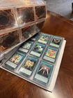 This is AS FOUND! There are at least 945 cards, I counted all the pages but left out the pages that were not 100% filled. Some pages may have 3-6 cards on them but that is very few pages and I did not include those in the total. This is a storage unit find, huge binder. All unsearched, I just don’t have the time. towards the back of the book there are many purple and green/teal cards. The majority are the classic colored cards lol, if you cant tell i have no idea about any of this stuff. MAINLY 1996 from what pages i saw, i did see a couple 2020. I did not look at each page