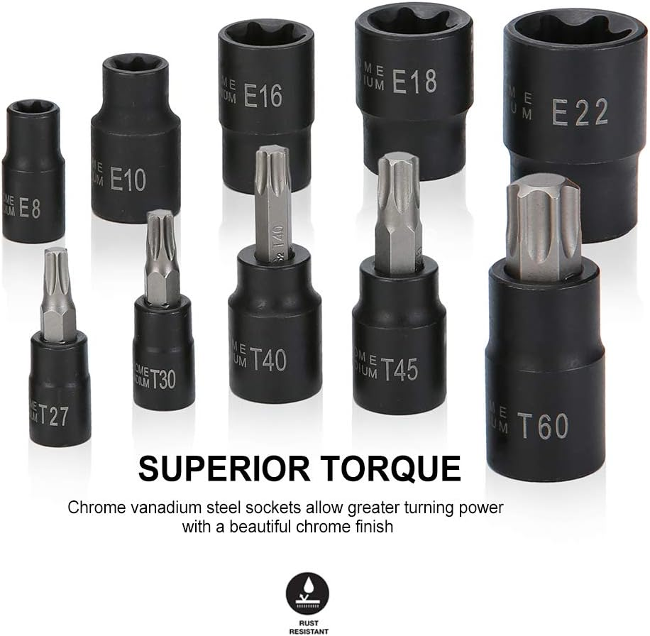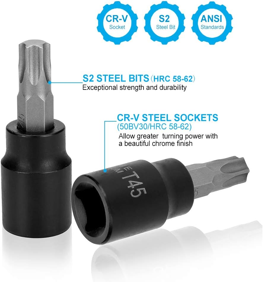 Store New Arrivals Add to Favorite View Feedback Contact Master Torx Bit Socket and External Torx Socket Set, S2 and Cr-V Steel, Tamper Proof Bit Sockets, 25 Piece Set Description Item model number 100068 Part Number 100068 Style 25 Piece Finish Black Oxidized Finish Item Package Quantity 1 Material Chrome Vanadium Steel, S2 Steel Batteries Required? No Compatible Fastener Range 0.375 inches Drive System Star, Torx Item Weight 2.4 pounds Batteries Included? No Number of Pieces 25 Finish Type Black Oxidized Finish Product Dimensions 8.6 x 6.2 x 1.8 inches Size E-Torx, Torx PRECISION BITS: Precisely and automatically machined bit tips to ensure accurate size, Chamfered bit ends insert smoothly into fasteners and protect both bits and fasteners from damaged edges. TORQUE STRENGTH: High strength chrome vanadium steel sockets provide superior torque for greater turning power with a Black Oxidized Finish to Help Prevent Rusting. APPLICATION: Our Torx / Star Set is a must for working on Cars, Motorcycles, Bikes, Lawn Equipment, Appliances, Machinery, And So Much More! 25 PIECE TORX & E TORX SET: Our Torx Socket Set Includes 13 Torx Sockets and 12 Female Torx Sockets. Torx in the Following Sizes: 1/4" Drive: T8, T10, T15, T20, T25, T27, T30; 3/8" Drive: T40, T45, T47, T50, T55; 1/2" Drive: T60 - External Torx in the Following Sizes: 1/4" Drive: E4, E5, E6, E7, E8; 3/8” Drive: E10, E12, E14, E16, E18, E20 1/2” Drive: E22 RELIABLE | EFFECTIVE | EFFICIENT: Users trust Renekton to be quality tools. You are backed by our Performance Assurance Limited Warranty. If you have any issues with your Renekton Torx Socket Set, simply contact customer service for troubleshooting help, parts, , or . RELIABLE | EFFECTIVE | EFFICIENT: Users trust Renekton to be quality tools. You are backed by our Performance Assurance Limited Warranty. If you have any issues with your Renekton Torx Socket Set, simply contact customer service for troubleshooting help, parts, , or . ABOUT US We offer the best prices around on high quality products. Our E-store includes media such as books, movies, music and games while offering electronics, toys, sporting apparel, clothing, tools, general home, garden items and more. SHIPPING We are always working hard to ensure your package arrives as soon as possible. Please understand that some factors like weather, high postal traffic, and the performance of shipping companies are outside of our control. We offer free shipping to the lower 48 states and ship within 2 business days of payment, usually sooner. We do not accept P.O. Boxes. Please provide a physical address. For shipping outside of the continental USA, we only use eBay's Global Shipping Program.The item is shipped to KY and then sent to the rest of the world. International customers are responsible for all duties and taxes. Continue to check out in order to calculate costs for shipping the item to your country. Messages regarding eBay's Global Shipping Program MUST be directed at eBay EXCLUSIVELY. RETURNS We offer a 30-Day Return Policy on items which you are not completely satisfied with. You have the option for a full-refund or an exchange of the item. No returns are available on items shipped outside of the USA. PAYMENT We accept PayPal. CONTACT US This page content is yet to come Please ad us to your favorite seller and visit again later Thank You CUSTOMER SATISFACTION We try our very best to make sure every customer is completely satisfied. If there's a problem, message us! We're happy to help. WE ACCEPT Copyright © 2021 AutoDS. | All Rights Reserved