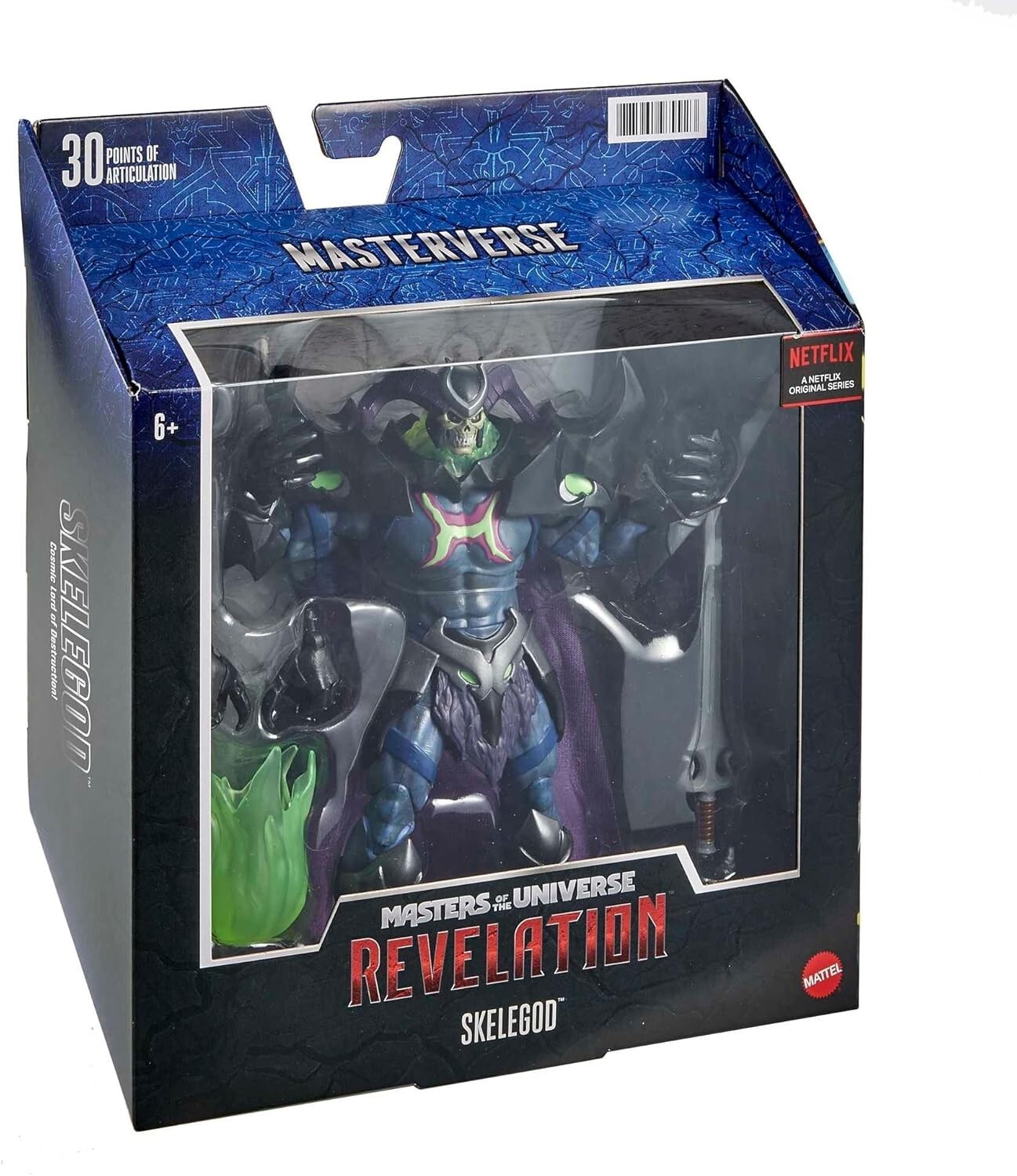 Introducing the Masters of the Universe - Revelation - SKELEGOD - Action Figure 7in. This limited edition, 1st edition figure is a must-have for any fan of the iconic TV show. The figure comes boxed and with clothes, making it the perfect addition to your collection. With a scale of 1:12 and made from high-quality PVC/Plastic, ABS Plastic, and Plastic materials, this figure is a true masterpiece. The Skelegod character is beautifully crafted with intricate details and vibrant colors, making it a great display piece for any collector. The figure is suitable for ages 6 years and up and is an original, licensed reproduction by Mattel. Don't miss your chance to own this amazing piece of Masters of the Universe memorabilia. These pictures are stock photos and are not the original photos Some packaging have imperfections.