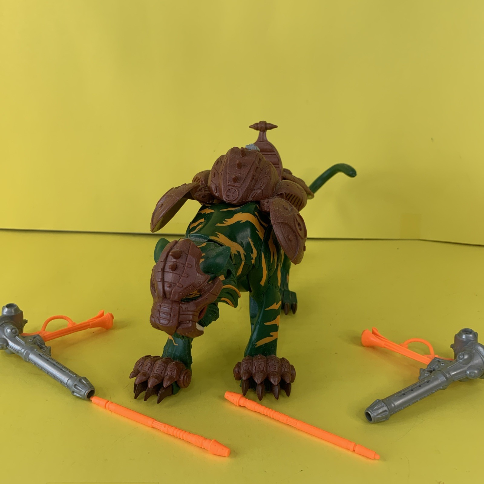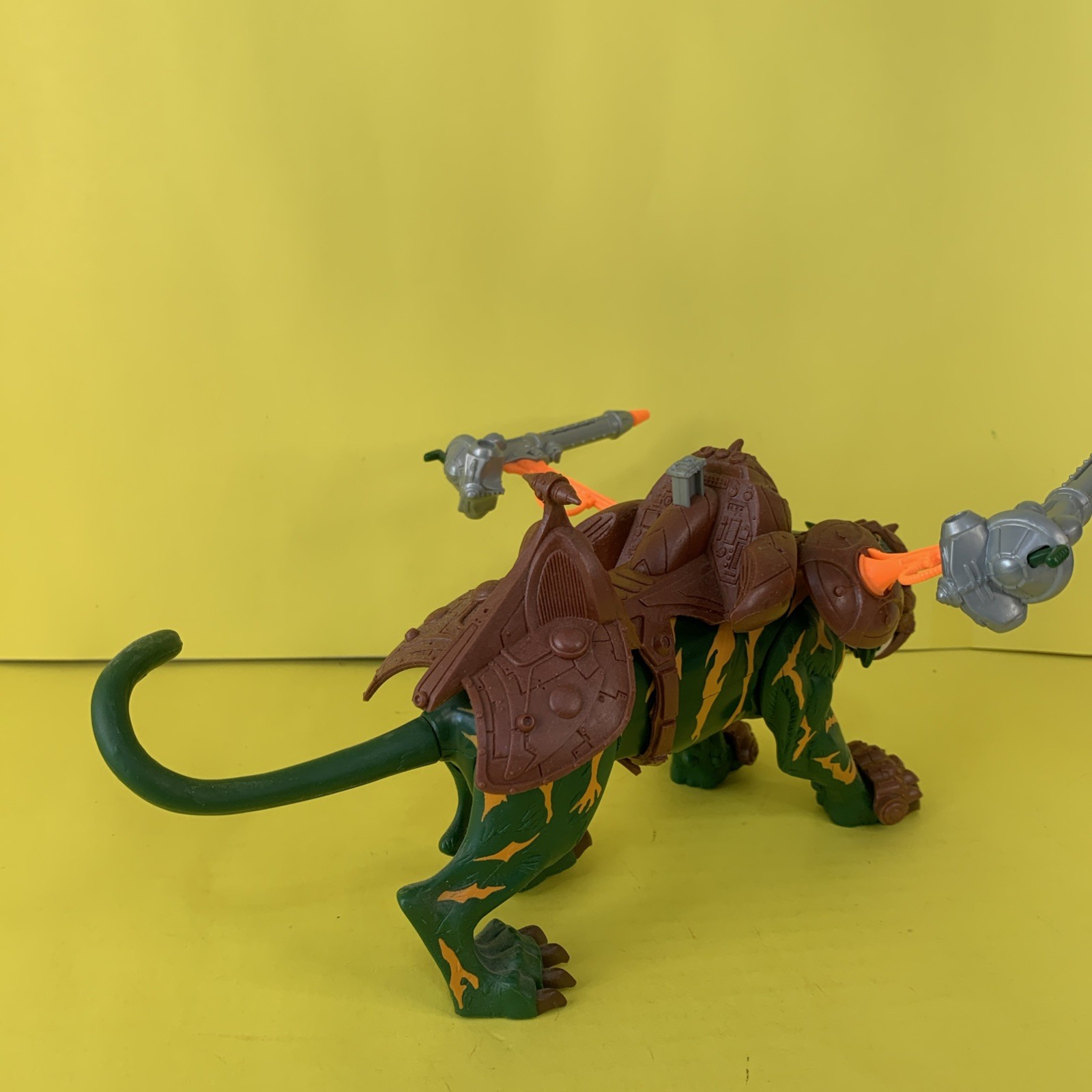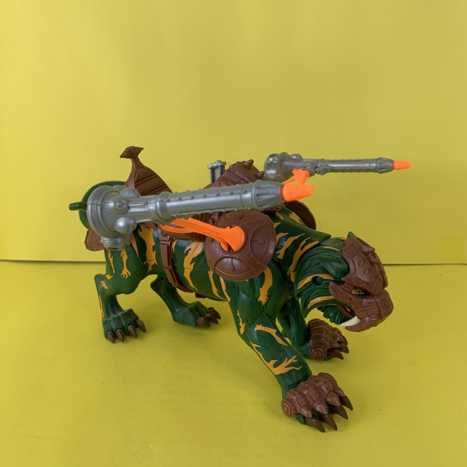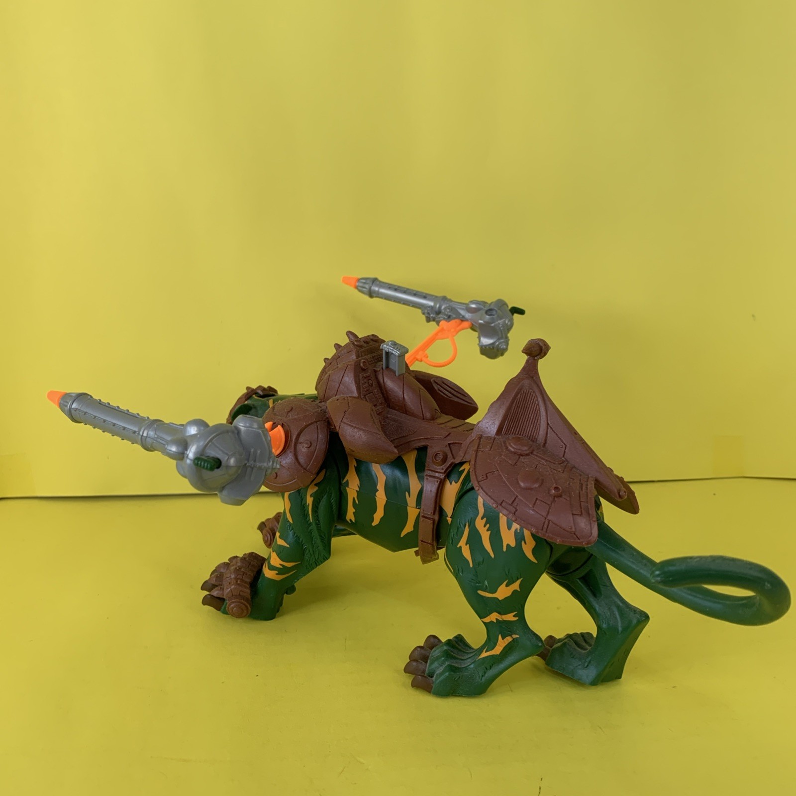 Battle Cat Fighting Tiger Real Name: Cringer A member of the Green Tiger Tribe, Cringer was saved from a Parek-Narr attack by a young Prince Adam and afterwards became his devoted companion for life. He assisted Adam during his quest to unite both halves of the Power Sword of He and afterwards was enhanced by it’s power to become Battle Cat the fighting tiger of He-Man. Cringer is one of only a handful of allies who knows Adam’s secret and fights alongside the other Masters of the Universe, carrying He-Man into battle against the forces of evil. When Adam acquired the power of the legacy stone, Cringer's armor was upgraded to match the power of the Samurai Battle Raptor Up for auction is this Masters of the Universe 2002 action figure is a must-have for any fan of the franchise. The Battle Cat oversized beast character is complete with all the details that make him a valuable addition to any collection. The figures are made by Mattel and is from the 2002 release year. It comes without packaging, but that does not affect its quality. The figure is not AFA graded, but it is still a great purchase. Get this complete Masters of the Universe Battle Cat figure and add it to your collection today! Product Description. Battle Cat have been stored in a smoke free environment. He have no paint rub no cracking and is complete. He comes with his saddle and firing missiles, Helmet and claw guards, all are removable. He are complete sold as is. All loose figures will be shipped in bubble wrap. These auction are offered with free domestic shipping. Sorry no international sales I am again selling off my toy collection. Auctions will include Masters of the Universe, DC Classics, Bucky O'Hare, LEGO Castle and much more. Please feel free to ask any questions