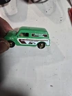 The Matchbox Candy Cars Food Series #5 features a 1965 Austin Mini Cooper Van in green, designed as a vintage delivery van in 1:64 scale. This diecast model from the 2020 Matchbox Candy Cars series showcases a Mini Van themed after Junior Mints candy, with the packaging being unopened. It is part of a collection aimed at boys and girls aged 3 and above, offering a nostalgic twist with the candy-inspired design on the classic vehicle. As is