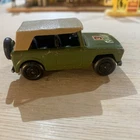 This Matchbox Lesney 1969 No 18 Military Field Car is a rare vintage find. Made in a 1:8 scale, the Land Rover car is designed in a military theme, featuring a classic green colour. As a part of the Matchbox brand, this collectible toy is a great addition for enthusiasts of diecast vehicles and vintage manufacture. Its authenticity and good used condition make it a valuable piece for any toy and games collector.