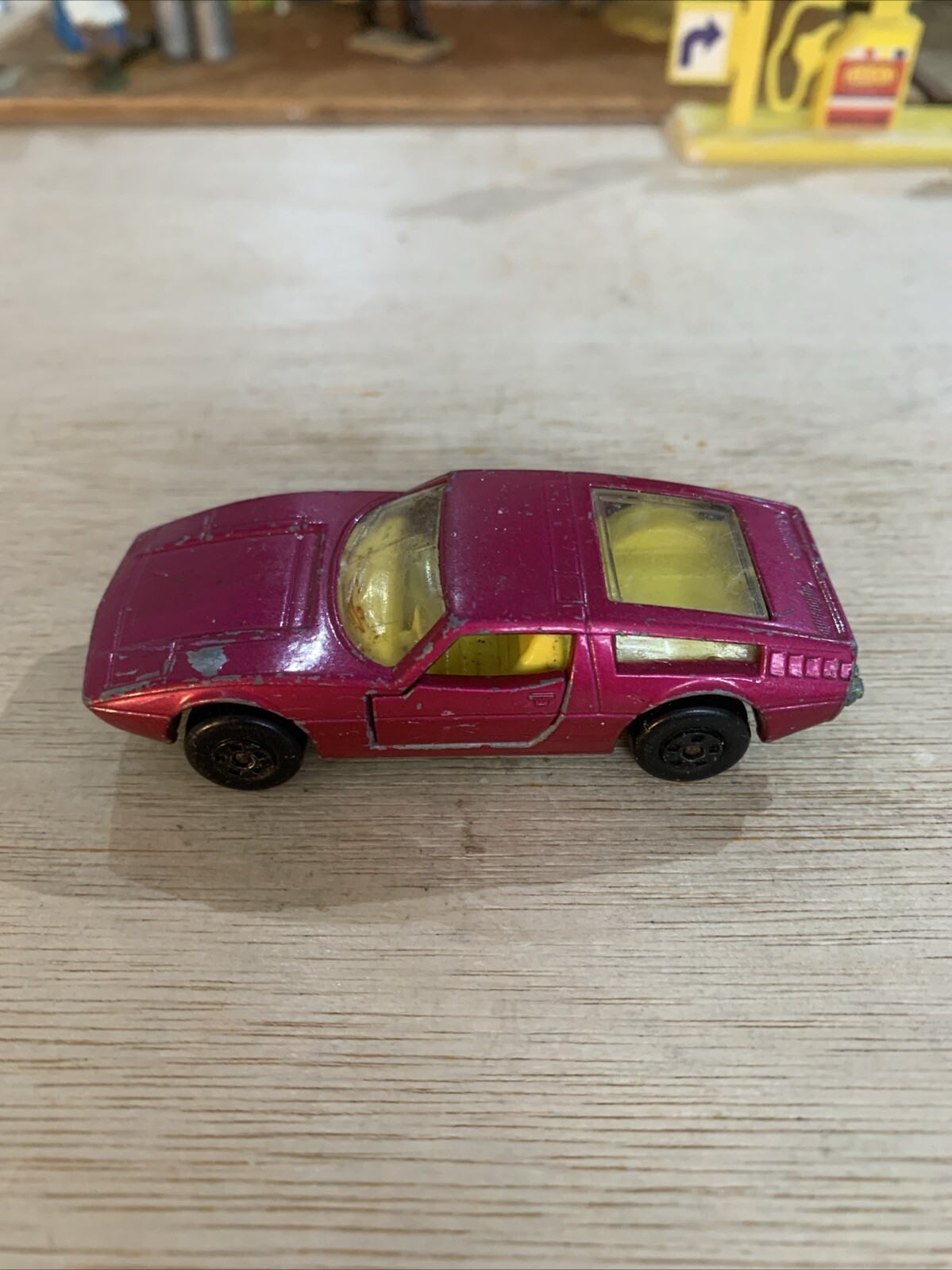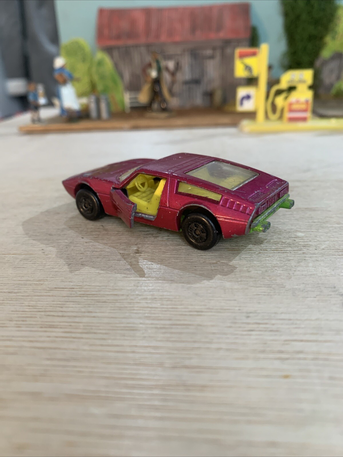The Matchbox Superfast Lesney No. 32 Maserati Bora in purple is a toy car featuring opening doors. This vintage diecast vehicle is part of the Matchbox series and is a replica of the Maserati car model. With its iconic design and attention to detail, this toy car is a collector's item for fans of vintage vehicles. Used condition see photos