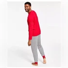 Product Details Holiday stripes bring festive fun to his pajama game in this supersoft thermal set from Family Pajamas. Texture: Thermal Waffle fabric Top: hits at hip; waffle-knit fabric; scoop neckline; pullover styling; long sleeves Bottom: hits at ankle; approx. inseam: 30-1/2"; waffle-knit fabric; elastic waist Search 'Family Pajamas Holiday Stripe' to see matching styles for the whole family Polyester/rayon Machine washable Imported