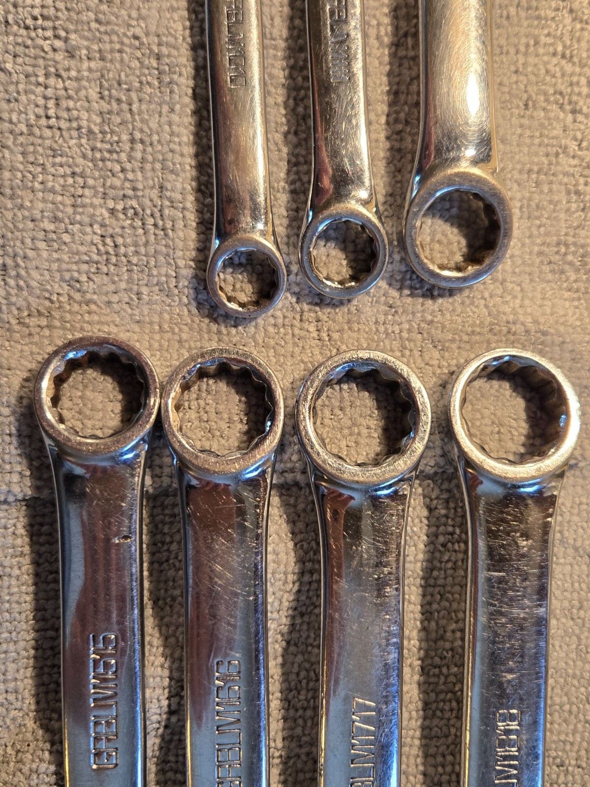 Matco Tools 7 piece set, Metric Double Box Ratcheting Wrench GRBLM1818 GRBLM1717 GRBLM1616 GRBLM1515 GRBLM1414 GRBLM1111 GRBLM1110 some scratches and scrapes from normal use Works properly See Photos