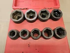 Matco Tools 9 SAE 1 Inch Drive Impact Socket Set 2 inch to 1 inch red snap case. Condition is Used. Shipped with USPS Ground Advantage.