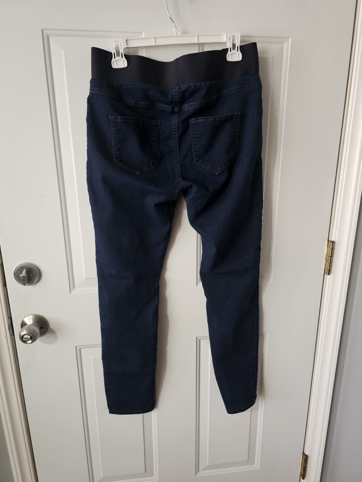 These Maternity Dark Wash Blue Stretch Tapered Leg Jeans from Song Brand are a great addition to your wardrobe. With a medium fabric wash and made from a cotton blend, they are comfortable to wear and machine washable. The jeans have a regular fit with a mid-rise, and a 32 inch waist size. The jeans come in a beautiful blue color with a solid pattern and feature a 28 inch inseam. They are perfect for winter, summer, fall, and spring and have stretch features that make them comfortable to wear. These jeans are suitable for women who are looking for a pair of comfortable jeans that are stylish and trendy.