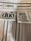 Duo Maternity Stretch Women’s Medium White Pink Blouse Striped ¾ Sleeve V Neck. Ties in the back. Side zipper or pull over head. Career Business Top. EUC F0220.0250 Bust 20” Length 25”