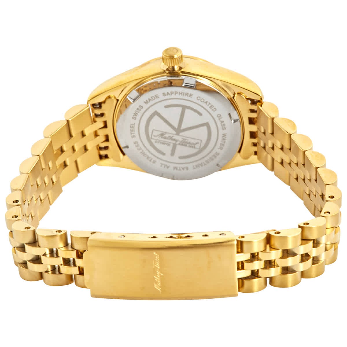 MOP dial enhanced by yellow gold-tone hands. Yellow Gold-tone stainless steel 316l case with a yellow gold-tone stainless steel 316l band. Quartz movement. 50 meters / 165 feet water resistance. Fixed bezel. Scratch Resistant Mineral crystal. Solid caseback. Deployment clasp. Pull / Push crown. Case size 26 mm x 3 mm. Mathey-Tissot D709PQI Mathy IV Watch. The Watchery THE WATCHERY Mathey-Tissot Mathy IV Quartz Ladies Watch D709PQI #MYT-D709PQI Authenticity Guaranteed Shop with confidence — all our products come with a 100% authenticity guarantee. MOP dial enhanced by yellow gold-tone hands. Yellow Gold-tone stainless steel 316l case with a yellow gold-tone stainless steel 316l band. Quartz movement. 50 meters / 165 feet water resistance. Fixed bezel. Scratch Resistant Mineral crystal. Solid caseback. Deployment clasp. Pull / Push crown. Case size 26 mm x 3 mm. Mathey-Tissot D709PQI Mathy IV Watch. Fast Shipping Orders generally ship within 2-3 business days from when payment has cleared. Free Shipping Economy Shipping is free for all orders within continental United States. Free returns Changed your mind? No worries—returns are free for all orders. Series: Mathy IV Model: D709PQI Subclass: Watches Movement: Quartz Case Size: Case Material: Stainless Steel 316L Case Color: Yellow Gold-tone Case Shape: Round Case Thickness: 3 mm Dial Color: Mother of Pearl Bezel: Fixed Brand Material: Stainless Steel 316L Brand Color: Yellow Gold-tone Brand Length: Brand Clsp: Deployment Features: Date, Hour, Minute, Second Water Resistance: 50 meters / 165 feet Shipping & Returns Information Domestic Shipping Economy Shipping is free for all orders within continental United States. Please make sure that your shipping address is correct when placing the order. Higher-end orders will require a signature, so please specify an address or work address that you can be available to receive the package and sign for it; furthermore, if a PO Box is used as the shipping address, we reserve the right to ask for a physical address. We will refund and not reship items that are unsigned for, missed delivery, or are returned to us because of an insufficient address. Economy Domestic Shipping Orders generally ship within 2 business days from when payment has cleared. Your tracking number will be emailed to you once shipped. Orders that ship free will go at economy speed which is usually 3-5 Business Days, but can sometimes take longer (NOT guaranteed to be delivered by a certain date), if you want guaranteed options please pay for expedited shipping. Expedited Domestic Shipping Orders generally ship within 1 business day from when payment has cleared. Your tracking number will be emailed to you once shipped. Orders are guaranteed by business days (Saturday & Sunday are not the business days). Shipping generally closes at 3PM EST. Please note: UPS does not deliver to PO Boxes, so please give us a home or work address when shipping expedited. Warranty Information Warranty At Watchery Shop, your satisfaction is our priority. All watches sold through our store come with a 12-month limited warranty that covers manufacturing defects such as issues with movement (mechanical or quartz), dial or hands malfunction, and battery replacement within the first 6 months. This warranty does not cover normal wear and tear, damage caused by accidents or misuse, water damage beyond rated limits, or any unauthorized repairs or modifications. To make a warranty claim, please contact us with your order number and a description of the issue, along with clear photos or videos. Our team will guide you through the process for a return, repair, or replacement if the claim is eligible. Please retain your proof of purchase, as it is required for all warranty claims. Customer Service Contact Us At Watchery Shop, we're here to help! Whether you have a question about your order, need assistance with a product, or want to know more about our warranty and return policies, our customer support team is ready to assist you. Hours: Monday – Friday, 9:00 AM – 6:00 PM (GMT) We aim to respond to all messages within 24 hours (excluding weekends and holidays). Your satisfaction is important to us — don't hesitate to reach out!