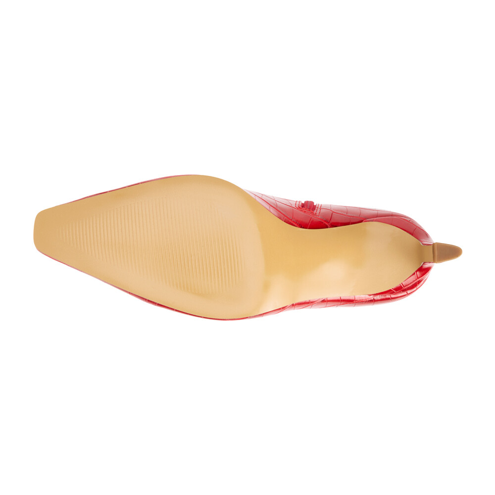 Robbie Croc Embossed Pointed Toe Zippered Platform Boots Product Details Textile lining Padded insole Pull on style Heel Height: 2.5 inches, Shaft Height: 17 inches, Circumference: 16 inches Vegan pointed toe knee high boot with exotic embossing. Additional Details Color: Red Occasion: Casual Gender: Womens Age: Adult Brand: COCONUTS by Matisse