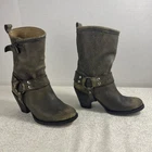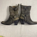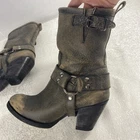 Matisse Leather Boots 7 B Cowgirl Western Distressed Harness Buckle Pre-Owned Review Photos For Details And Measurements