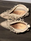 Add a touch of country style to your wardrobe with these Coconuts By Matisse Lambert Western Cowgirl Fringe Booties. These boots are perfect for casual occasions and come in a beautiful beige color with fringe accents that add a playful touch. The block heel style provides comfort for all-day wear while the textile outsole and upper material ensure durability. These boots are a size 7.5 and are perfect for women who want to embrace the cowgirl theme. The Coconuts By Matisse brand is known for its high-quality footwear, and these boots are no exception. They are perfect for fall and winter seasons and will add a touch of warmth to any outfit.