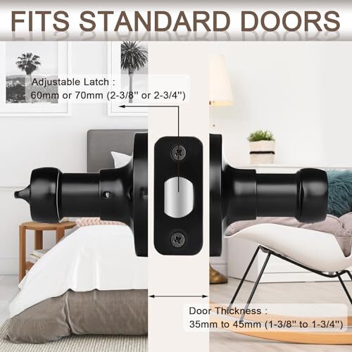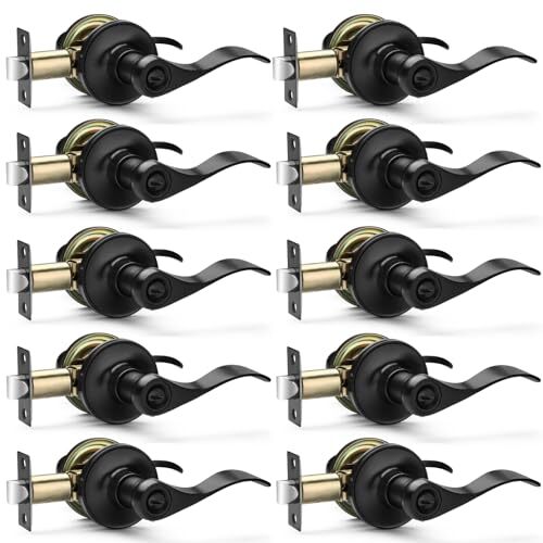 Return Policy Fast Delivery Trusted seller 10 Pack Matte Black Door Handles Privacy Door Levers, Heavy Duty Bed and Bath Door Locks Interior Door Knobs, Reversible Keyless Wave Lever Door Handles Product Description 【MODERN DESIGN】: Simplistic line design looks bright and tasteful, giving you the sense of maturity,Suitable for a variety of decoration styles. Matte black finish is gentle and decent. It also gives you a smooth touch while enhancing the beauty of your room. 【PREMIUM QUALITY】: Heavy-duty door handle is made of premium quality zinc alloy and brass to rust-free in a high humidity environment. The door lever has a thick and smooth black color powder coating for long-lasting product life. 【PRIVACY FUNCTION】: The privacy door levers can be locked by twisting the button inside and opened outside in case of emergency with a flat-tipped tool such as a screwdriver or coin, ideal for use with bedrooms, bathrooms or offices, etc. 【EASY INSTALLATION】: All door handles are reversible and can be installed left-handed or right-handed. Privacy door handles come with all accessories and included installation instructions to help you complete the simple installation of the door handle lock in less time. Each of door handle is packaged separately to avoid scratches caused by collisions during transit. 【ADJUSTABLE LATCH】: Black door knob have adjustable universal latch - 2-3/8"(60mm) or 2-3/4"(70mm). Fits door thicknesses of 1.38"(35mm) to 1.78"(45mm). Dimensions: Lever Length: 4-7/10"(120mm), Rosette Diameter: 2-3/5"(65mm). Shipping Returns Payment Shipping Shipping is FREE to all addresses other than APO/PO boxes in the lower 48 states. All our stock ships from US-based warehouses. Shipped via USPS or UPS (depending on location and package weight) Unless stated otherwise, all orders will ship within 24-72 hours of your payment being processed. Check our feedback to see the great reviews of FAST shipping we offer. Returns Seller does not accept returns Payment We currently accept payment via eBay managed payments only. Once payment is cleared, we will dispatch your shipment within 1-3 business days. Please refer to the "Shipping" tab for more information regarding shipping speed to your destination.